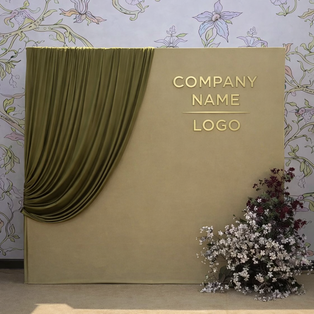 A branded or styled backdrop that adds dimension and visual interest while remaining professional and polished.